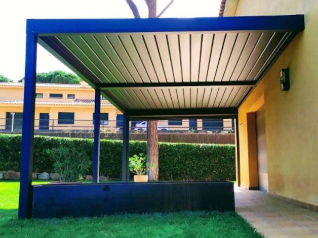 La pergola bioclimatica è costituita da una struttura in alluminio con lame parallele facilmente regolabili grazie a un sistema motorizzato silenzioso incluso nel prezzo. Le lamelle orientabili permettono la circolazione dell'aria,