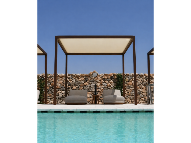 Le coperture modello Beach sono delle splendide strutture (240cm di altezza) che donano un tocco di stile ad ogni ambiente in cui vengono installate, grazie anche alla possibile applicazione di chiusure laterali realizzate in tessuto acrilico di tipo idrorepellente, che le trasformano in dei moderni gazebo/pompeiane con tende dall'ottimo design e dal garbo unico.